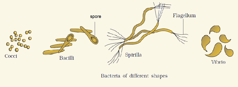 Bacteria are grouped under four categories based on their shape: