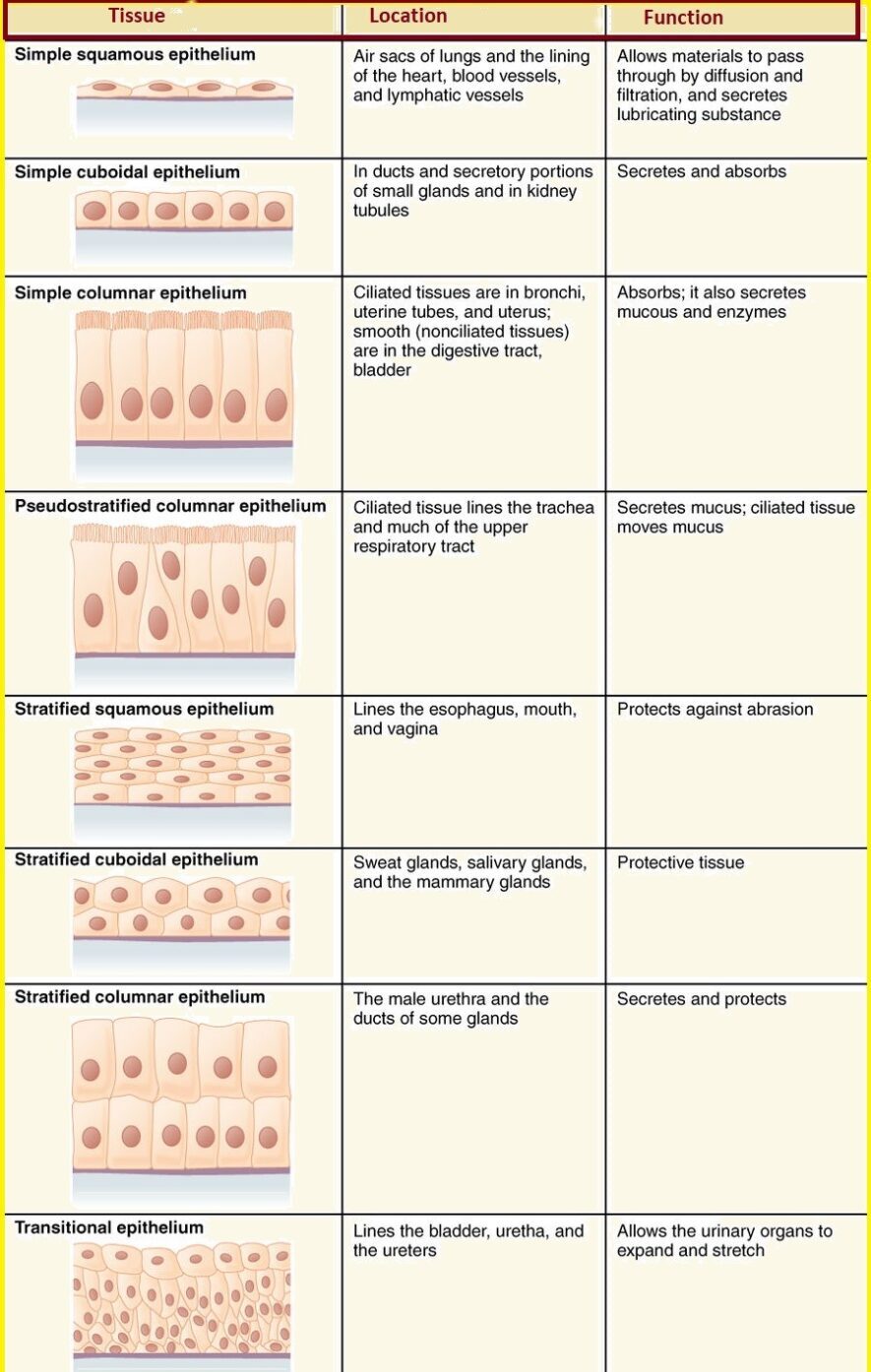 Types of epithelial tissue: