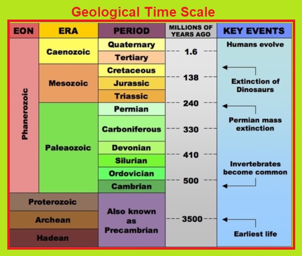 The geological time scale depicting the evolution of life forms from unicellular bacteria to modern man is given below.