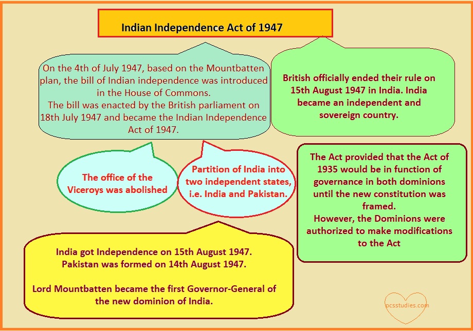 - The bill was enacted by the British Parliament on 18th July 1947 and became the Indian Independence Act of 1947.