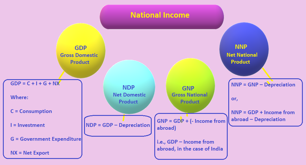 - Though the GDP, NDP, and GNP, all are ‘national income’ but they are not written with capitalized ‘N’ and ‘I’.