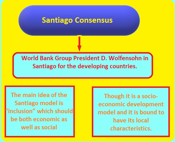 The proposal – Santiago Consensus – from the World Bank inspired the world governments to focus more on aspects of inclusive social-economic growth. As it focuses on the inclusion of both the financial reforms as well as social reform aspects