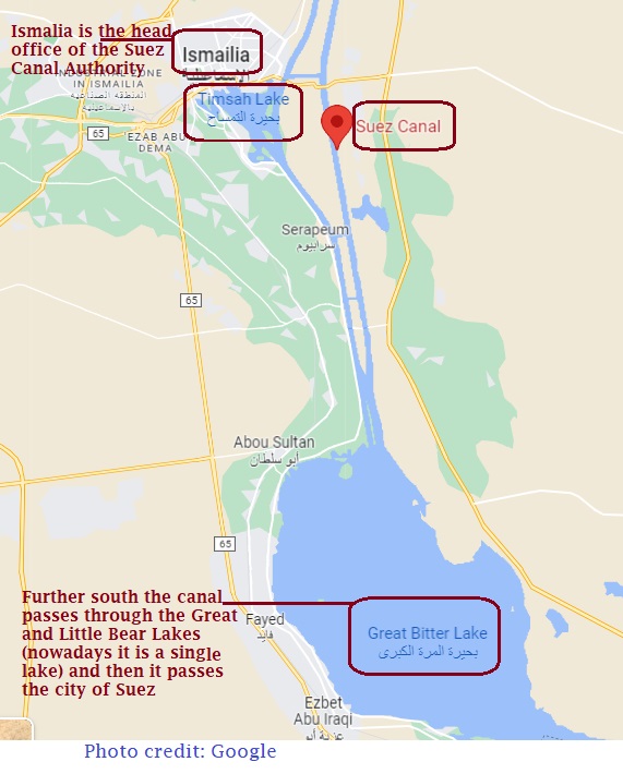 Lakes in Suez; Canal on Map: Source- Google