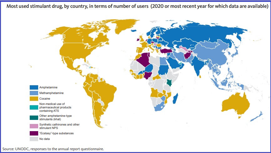 The World Drug Report 2022 provides a global overview for the supply and demand of opiates, cocaine, cannabis, amphetamine-type stimulants, and new psychoactive substances (NPS), as well as their impact on health.