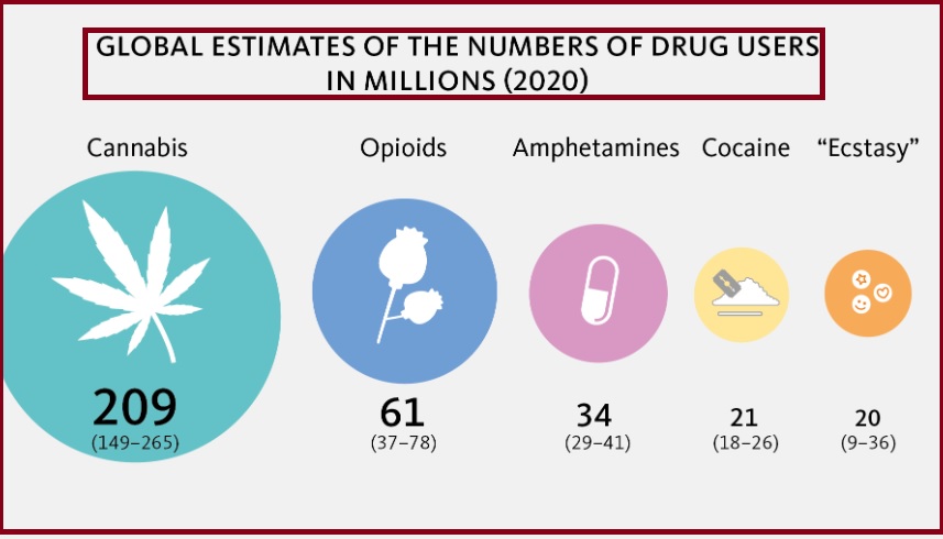 - According to the report, around 284 million people aged 15-64 used drugs worldwide in 2020, a 26% increase over the previous decade.